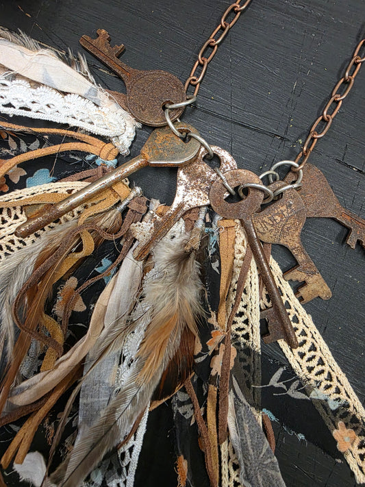 Vintage Rusty Key & Ribbon Necklace