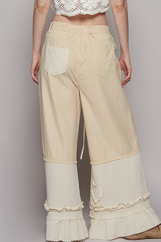 Wide Leg Shirring Ruffle Pants, Oatmeal UWP73