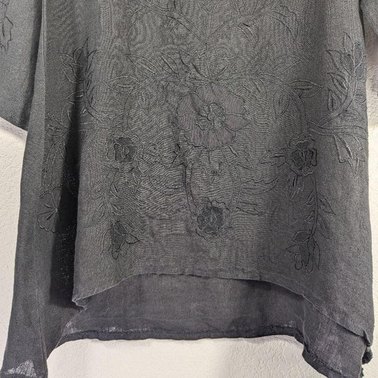 Heart's Desire Clothing - Embroidered Applique Linen Charcoal