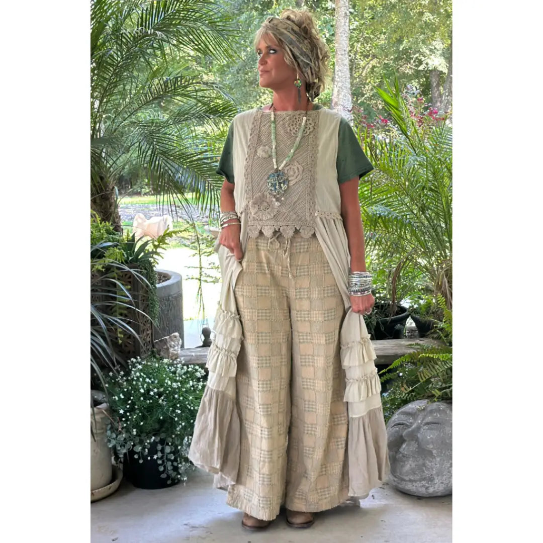 Set off on a style adventure with our Jaded Gypsy Checking on You Pants, featuring a spacious leg and a distressed look check pattern.