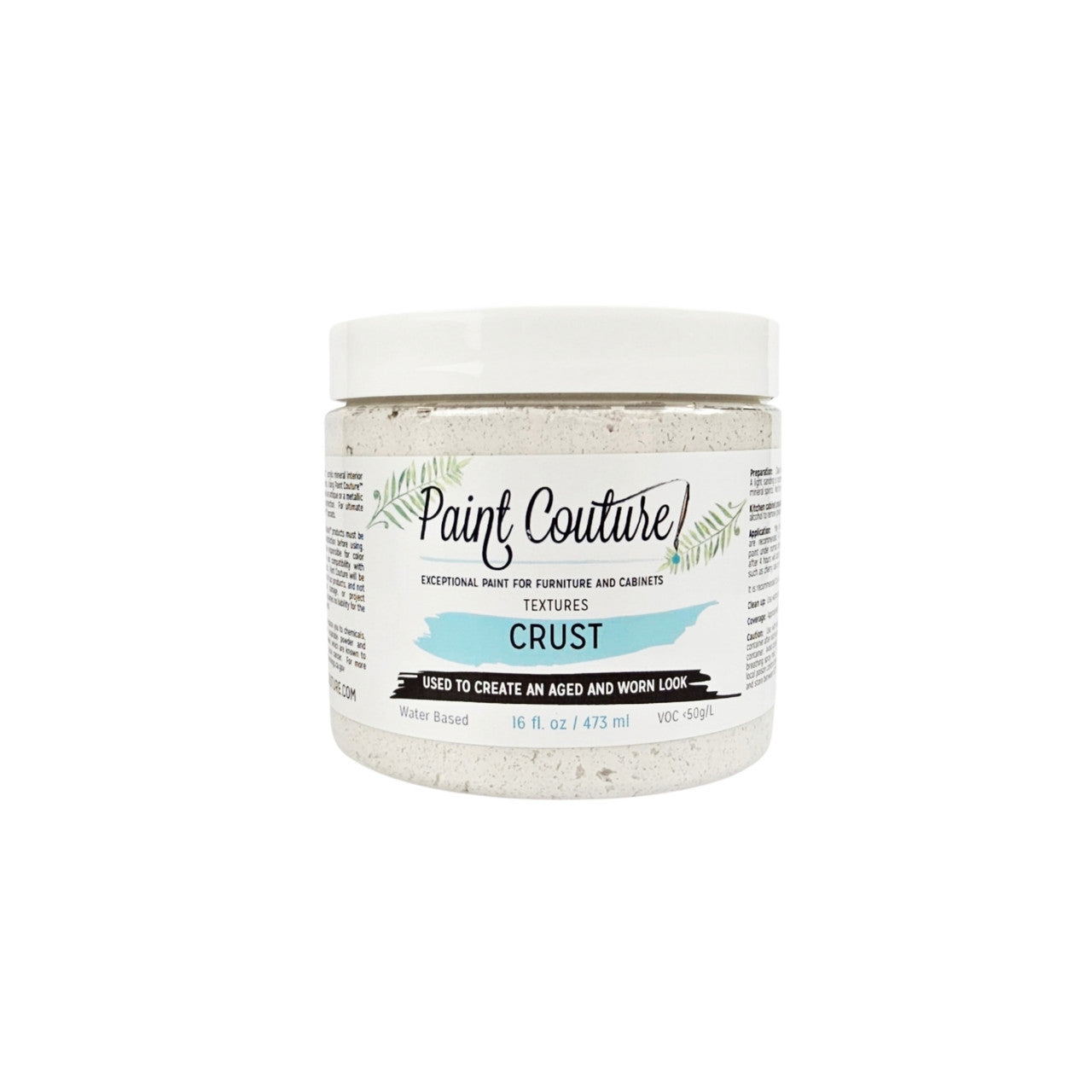 Paint Couture Crust will provide an aged or crusty look to your furniture or cabinets. It is an acrylic plaster speckled with a natural mineral from the earth. No priming is needed, apply with a brush, roller or a Trowel. Leave it crusty or manipulate it more to achieve a smoother look. Apply it all over or randomly to achieve your desired look. It can be painted or glazed with our products. Pull Couture Crust through a stencil then dry brush over it for another effect. Clean up is with soap and water.