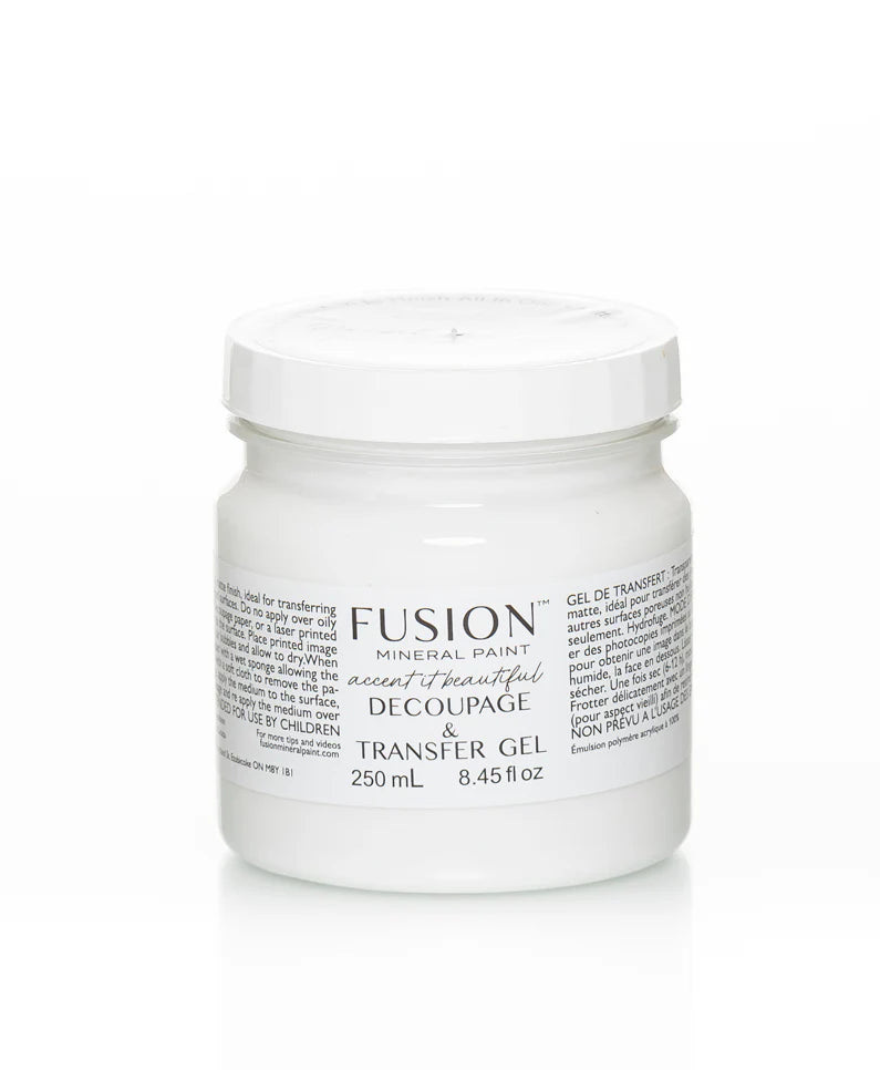 To transfer an image simply apply the FUSION Decoupage & Transfer Gel to the surface and place your print face down. Apply pressure with a putty knife or credit card to ensure contact and remove any bubbles. After 24hrs or so, you can wet the back and start rubbing away the paper pulp. Next, add wax or another layer of the Decoupage and Transfer Gel for protection.