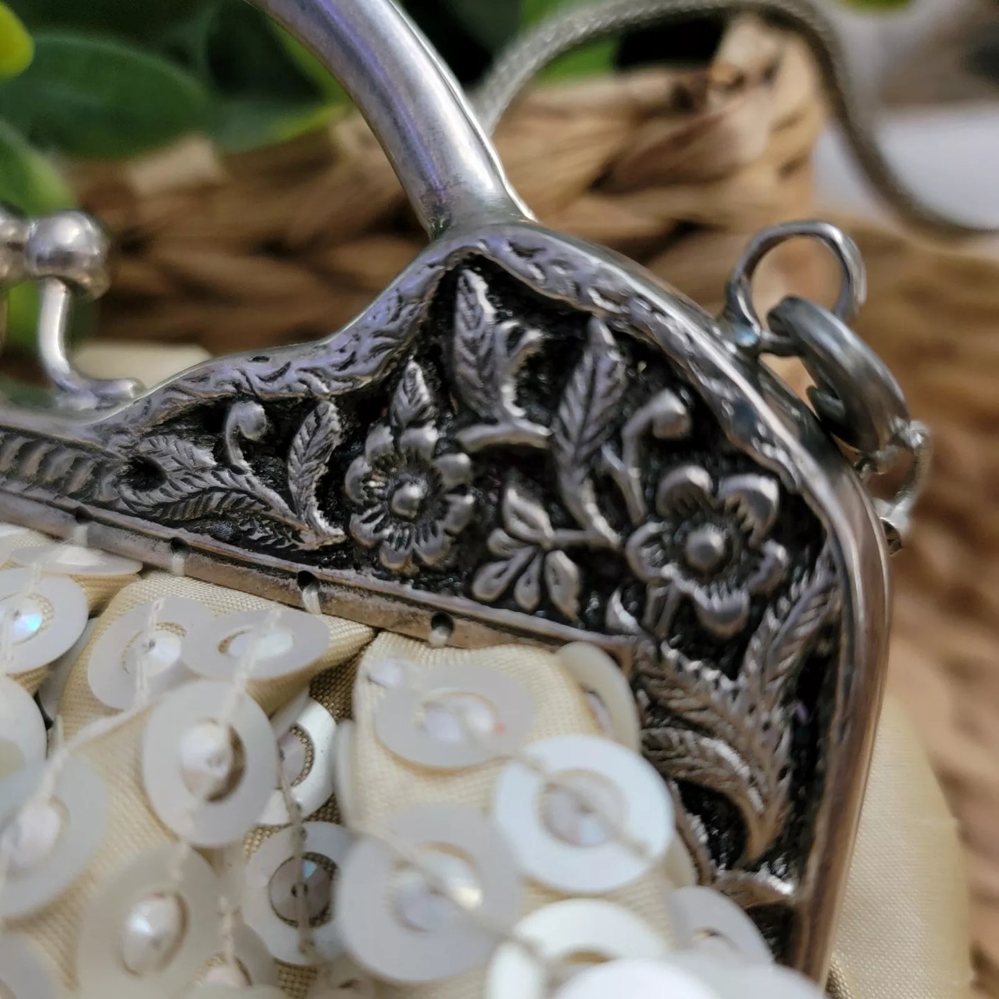 Handmade Victorian Vintage Style Wedding-Bridal Purse, Sequin with Silver Clasp