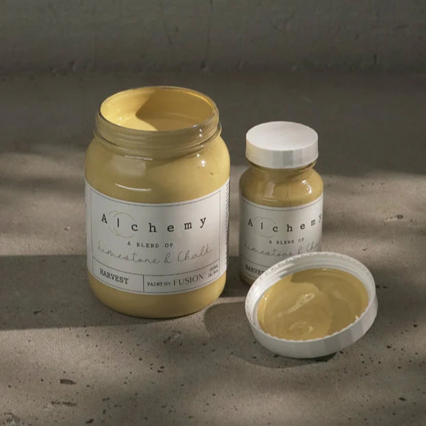 Alchemy by Fusion is a chalk-style paint known for its flat, chalky finish and artistic flexibility. It’s highly pigmented and a little thicker in texture, highly blendable, easy to layer and distress, making it perfect for achieving unique, textured looks. Adding a touch of water or misting while painting is a common desire among painters and it works very well with Alchemy. Fusion Mineral Paint has a very high built-in durability and a modern, self-sealing finish, Alchemy allows for creative freedom by letting you choose your preferred topcoat or leave it as is for a soft, flat vintage look.