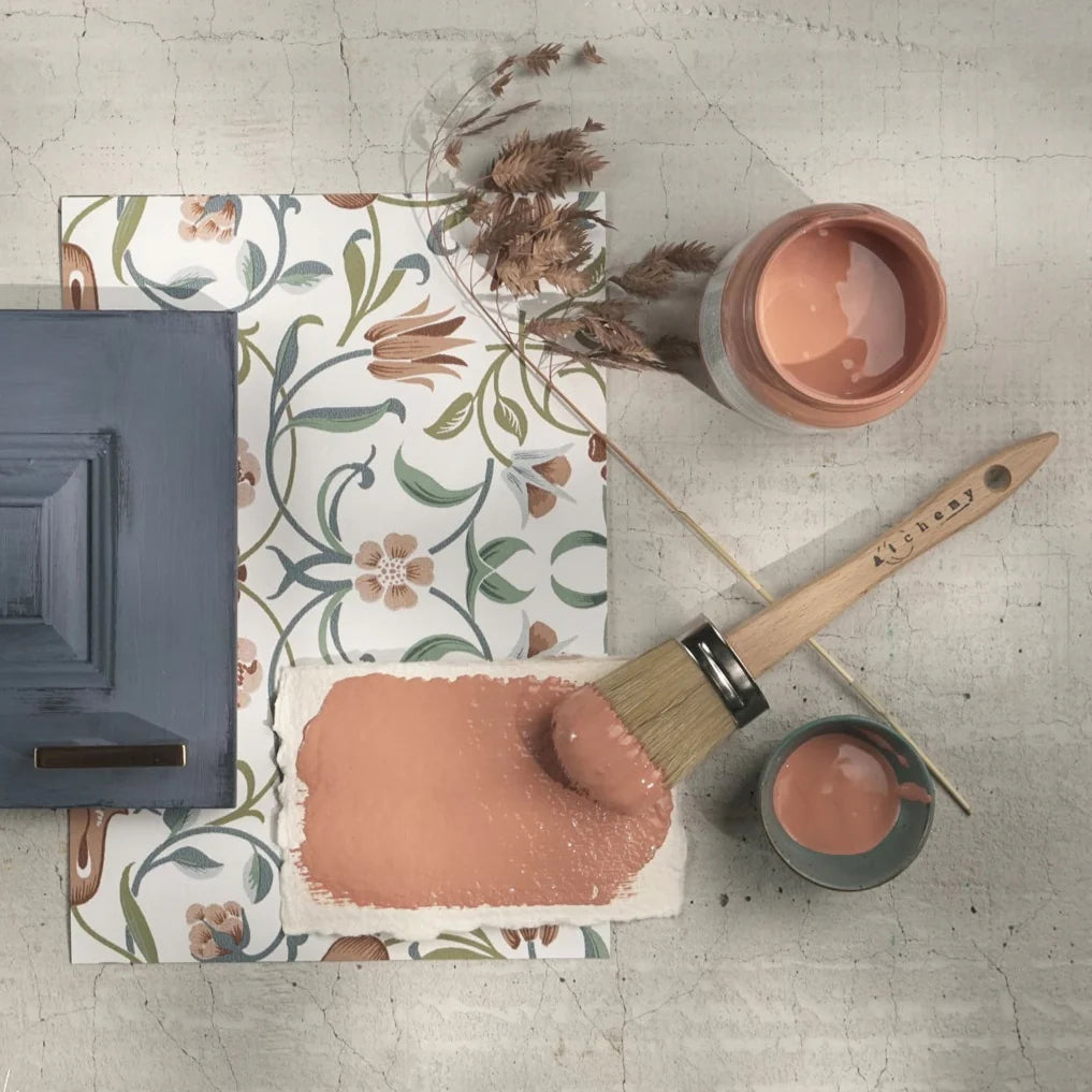 Alchemy by Fusion is a chalk-style paint known for its flat, chalky finish and artistic flexibility. It’s highly pigmented and a little thicker in texture, highly blendable, easy to layer and distress, making it perfect for achieving unique, textured looks. Adding a touch of water or misting while painting is a common desire among painters and it works very well with Alchemy. Fusion Mineral Paint has a very high built-in durability and a modern, self-sealing finish, Alchemy allows for creative freedom by letting you choose your preferred topcoat or leave it as is for a soft, flat vintage look.